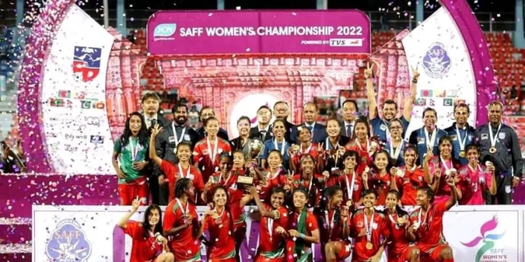 নেপালকে ৩-১ গোলে হারিয়ে প্রথমবারের মতো সাফ উইমেনস চ্যাম্পিয়নশিপের শিরোপা জিতেছে বাংলাদেশ নারী ফুটবল দল। রঙ্গশালার সবুজ গালিচায় নতুন ইতিহাস লেখার হাতছানি ছিলো ওদের সামনে। সাফের নতুন চ্যাম্পিয়ন হয়েই সেই ইতিহাসে তুলির শেষ আঁচড় দিলো বাংলার বাঘিনীরা। সাফ নারী চ্যাম্পিয়নশিপের ফাইনালের মহারণে স্বাগতিক নেপালকে ৩-১ গোলে হারিয়ে দক্ষিণ এশিয়ার সেরার মুকুট মাথায় তুললো সাবিনা-কৃষ্ণারা।