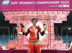 সাফের আসরের শ্রেষ্ঠত্ব! ২০০৩ সালের ছেলেদের সাফের পর যেন এই বাক্যটি যেন ভাবনারও অবান্তর। তবে দুঃসাহস দেখিয়েছে বাংলার মেয়েরা। শুধু স্বপ্নই দেখাননি সাবিনা-সানজিদারা, হিমালয়ের দেশে গিয়ে সাফের শ্রেষ্ঠত্বের মুকুট মাথায় তুলেই ছেড়েছে বাংলার বাঘিনীরা। বাংলাদেশকে সাফের শিরোপা এনে দিতে সামনে থেকেই নেতৃত্ব দিয়েছেন অধিনায়ক সাবিনা খাতুন। তার ফলস্বরুপ পেয়েছেন টুর্নামেন্ট সেরার পুরস্কার।