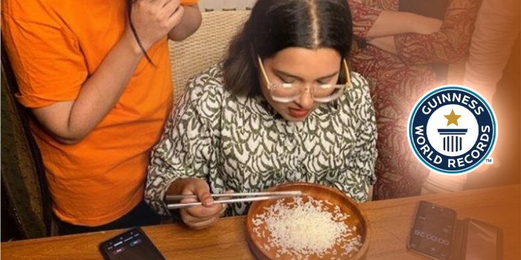 এর আগে বাংলাদেশের আরেক তরুণী নুসরাত জাহান নিপা এক মিনিটে চপস্টিক দিয়ে ২৭টি ভাত খেয়ে রেকর্ড করেছিলেন।