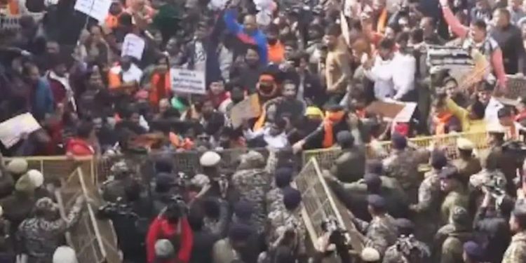 মঙ্গলবার (২৩ ডিসেম্বর) এই বিক্ষোভ শুরু হওয়ার পর শতাধিক মানুষ হাইকমিশনের সামনে জড়ো হয়। সংবাদমাধ্যম এনডিটিভি জানিয়েছে, ব্যারিকেড ভাঙার কারণে পরিস্থিতি এখনও উত্তপ্ত, তবে নিরাপত্তা বাহিনী পরিস্থিতি নিয়ন্ত্রণে রাখতে চেষ্টা করছে। হাইকমিশনের নিরাপত্তার জন্য তিন স্তরের ব্যবস্থা গ্রহণ করা হয় এবং পুলিশের পাশাপাশি প্যারামিলিটারি বাহিনীর সদস্যদেরও মোতায়েন করা হয়েছে।