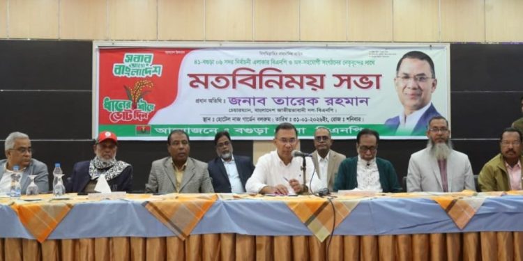 তারেক রহমান বলেন, বগুড়া বিএনপির শক্ত ঘাঁটি। এ কারণে বগুড়ার নির্বাচনি দায়িত্ব আমি নিশ্চিন্ত মনে সহকর্মীদের হাতেই ছেড়ে দিতে চাই।